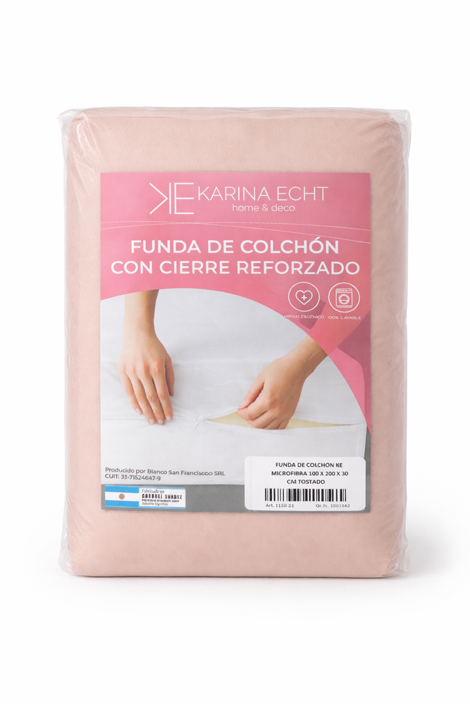 • Tela: Microfibra Pesada. • Composición: 100% Poliéster. • Medidas: Para colchón Hasta 140x190x20 Cms. • Sistema: Con Cierre Reforzado. • Origen: Argentina. • Marca: KARINA ECHT