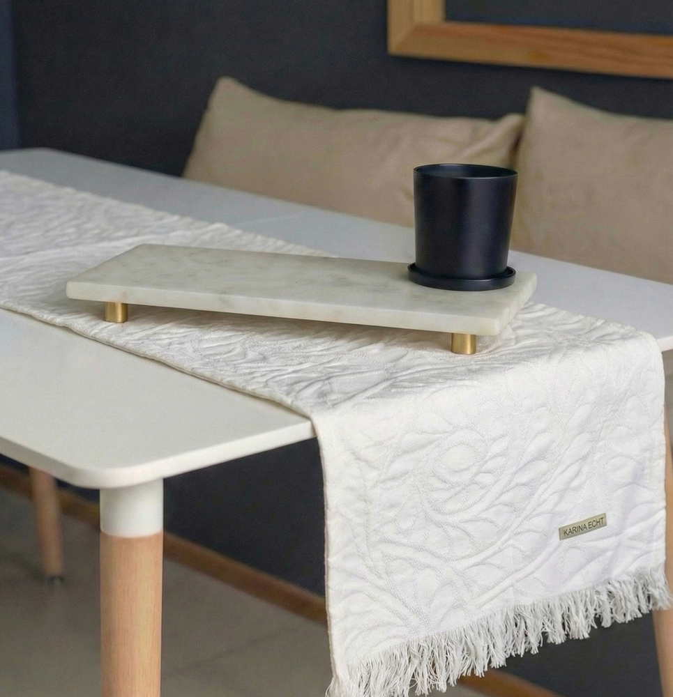 • Tela: Jakard Crudo. • Medida: 40 x 150 cms Medidas Aproximadas. • Terminacion: Con Flecos. • Origen: Argentina. • Origen: KARINA ECHT®