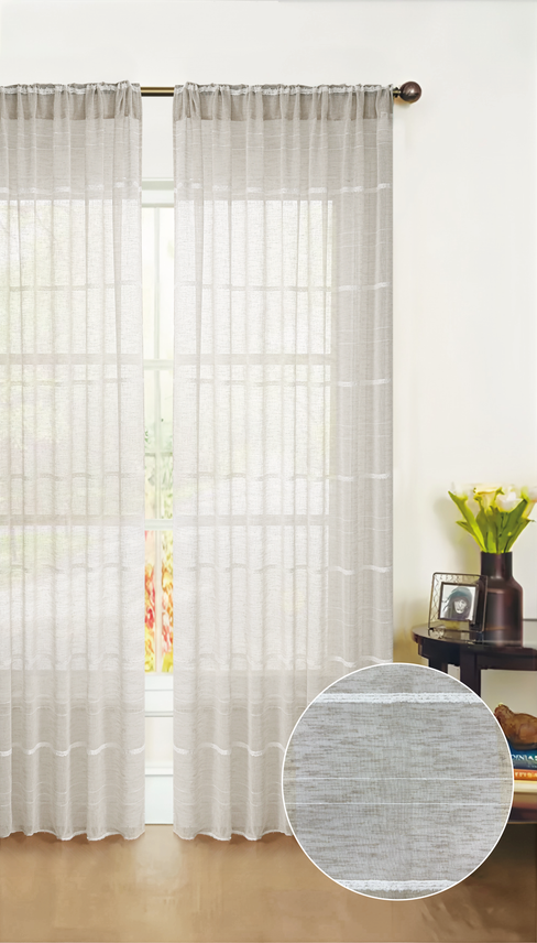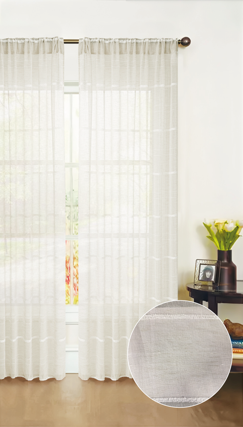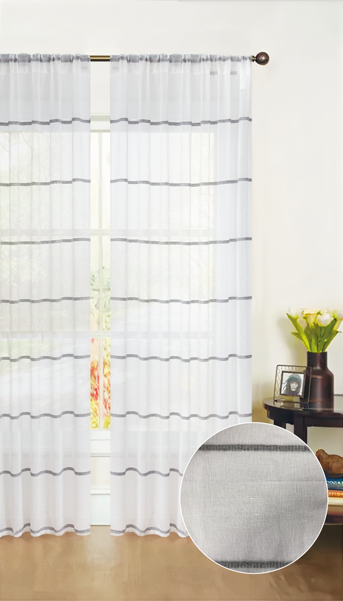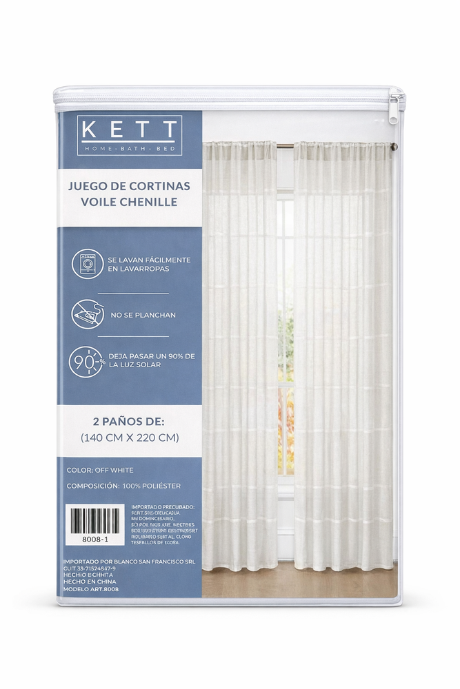 • Tela: Voile Chenille. • Composición: 100% Poliester • Medidas: 140 x 220 Cms Medidas Aproximadas. • Sistema: Presilla Escondida • Incluye: 2 paños de 140 x 220 Cms cada uno • Marca: KETT • Origen: China.