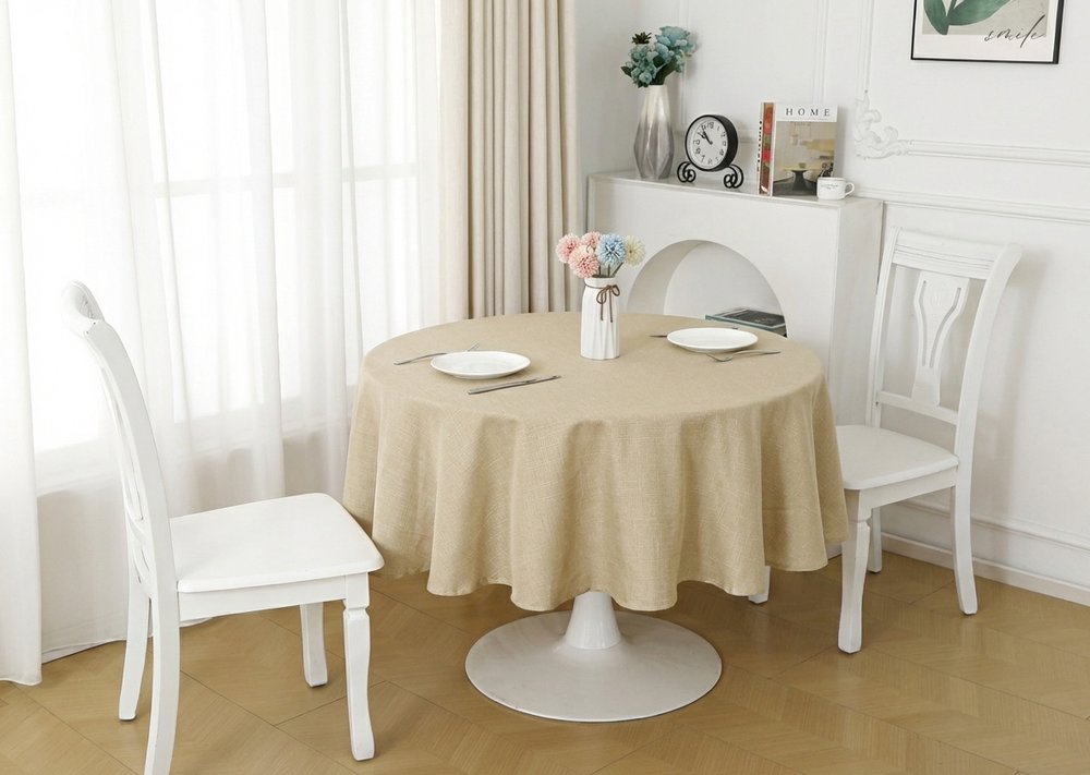 • Tela: Linen Antimancha. • Material: 100% Poliéster. • Medidas: Diametro 180 cms • Marca: KETT. • Origen: China.